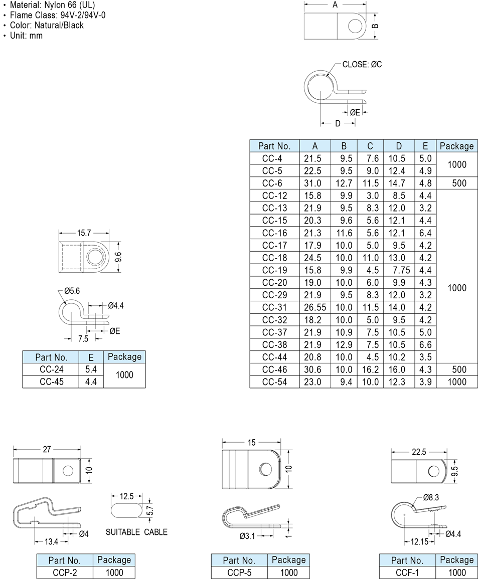 CC系列、CCP系列、CCF-1 Cable Clamp 螺絲固定