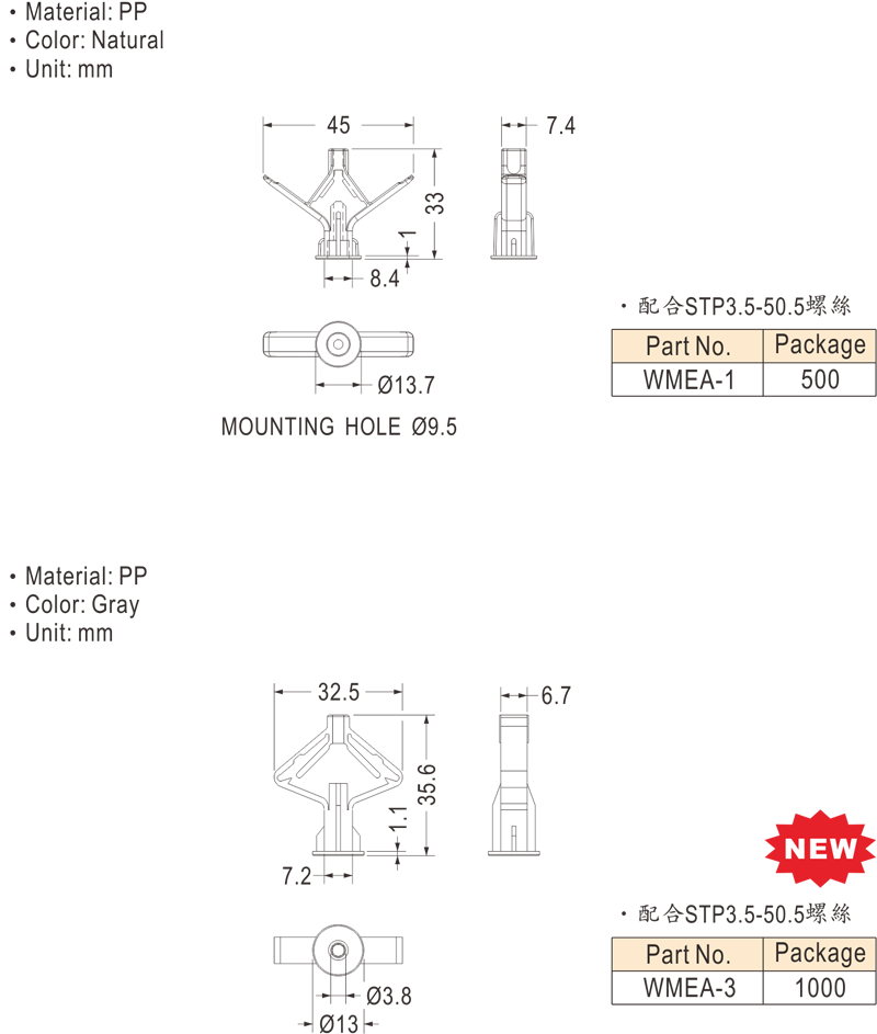WMEA-1、WMEA-3 Plastic Conical Anchor