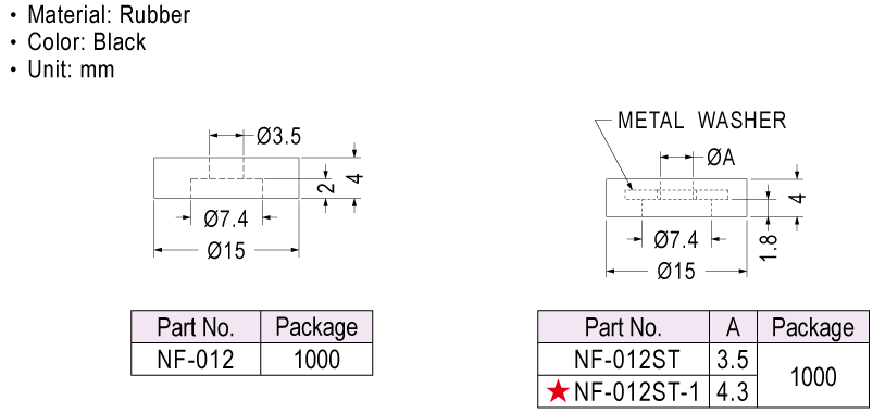 NF-012、NF-012ST、NF-012ST-1 Rubber Foot