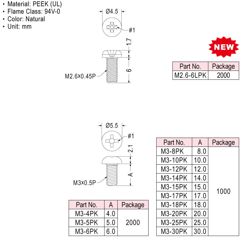 M2.6-6LPK、M3-xxPK系列 Plastic Screw