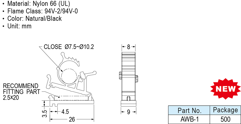 Fix wire on board or PC board, convenient for maintenance and space-saving.