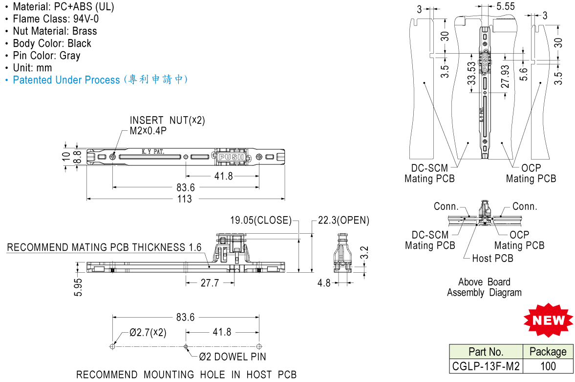固定左右兩片OCP3.0板於機殼或PC板上,安裝方便。