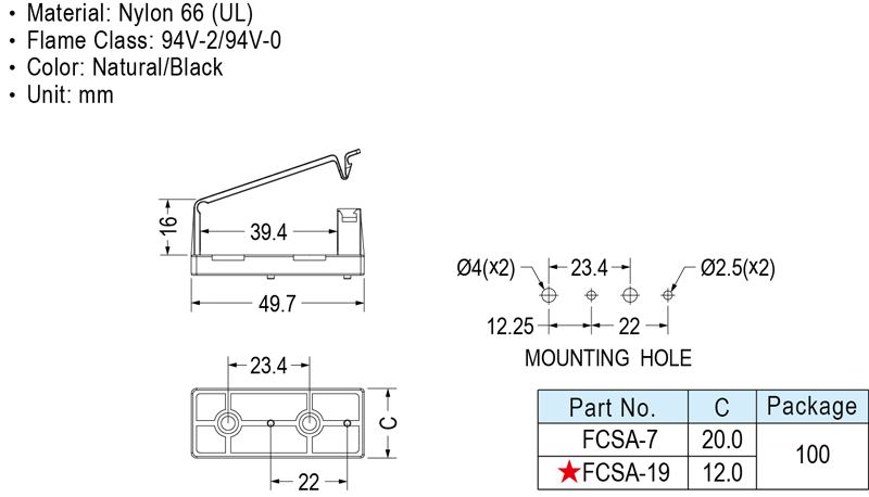 FCSA-7、FCSA-19 Flat Cable Clamp 螺絲固定