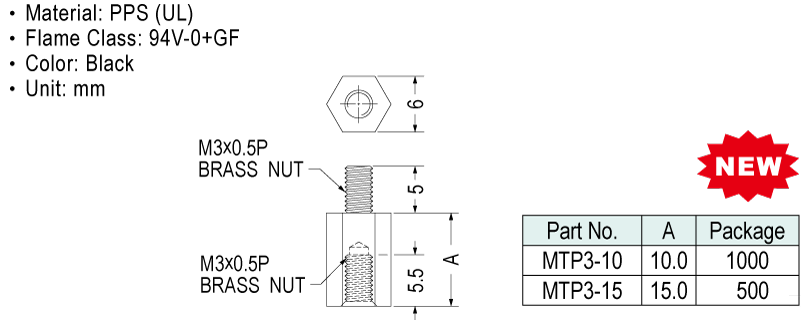 MTP3-10、MTP3-15 Plastic Metal Insert Standoff Male-Female Standoff