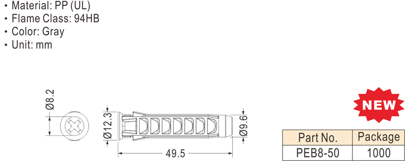 PEB8-50 Plastic Conical Anchor 膨脹螺絲 塑膠壁虎